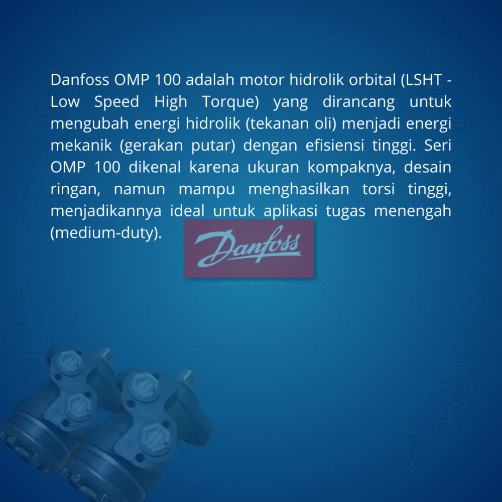OMP 100 Danfoss adalah motor hidrolik orbital yang menawarkan kombinasi optimal antara torsi tinggi, efisiensi, dan daya tahan. Dengan desain kompak, performa stabil, serta kualitas manufaktur kelas dunia dari Danfoss, motor ini menjadi pilihan ideal untuk berbagai aplikasi industri dan mobile. Bagi pengguna yang membutuhkan motor hidrolik andal dengan performa konsisten dan biaya perawatan rendah, OMP 100 Danfoss merupakan solusi yang tepat dan terpercaya.
